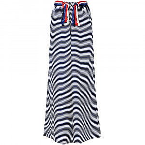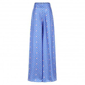 Cerulean blue wide-leg trousers with ruffle trim to sides.